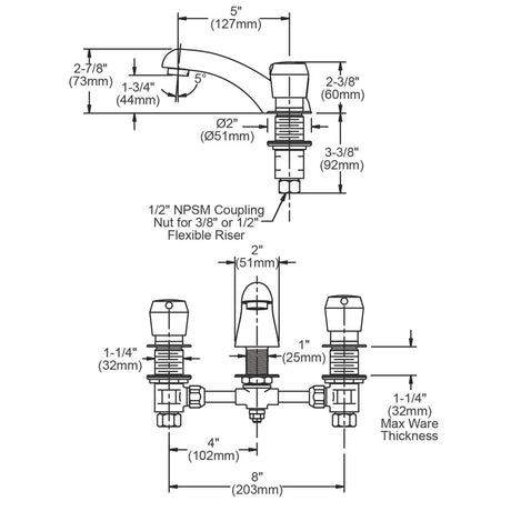 8 in. Wall Mount Mixing Faucet, Eterna Cartridges, 4 in. Wrist Action Handles & Swivel Gooseneck