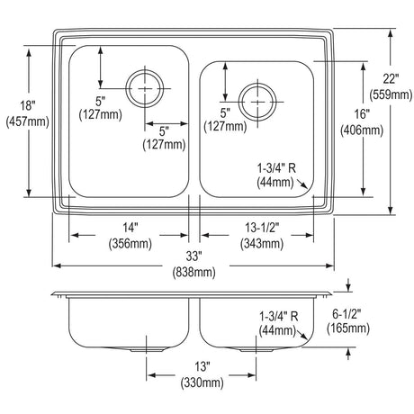 Elkay Lustertone Classic Stainless Steel 33" x 22" x 7-7/8", Offset Double Bowl Drop-in Sink