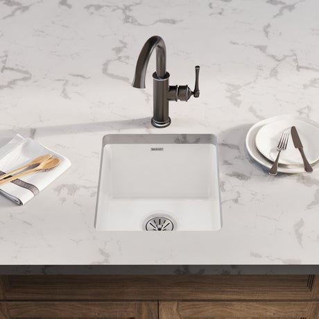 Elkay Fireclay 16-7/16" x 18-15/16" x 9-1/16" Single Bowl Undermount Bar Sink, White