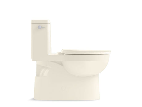 One-piece compact elongated toilet with skirted trapway, 1.28 gpf