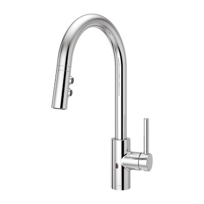 Touchless pull-down kitchen sink faucet with three-function sprayhead