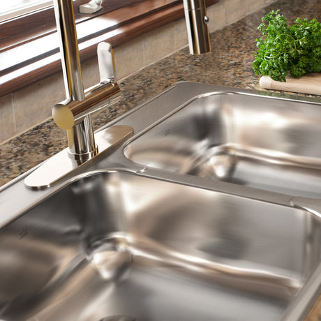 Reginox 31.25-in LR x 20.5-in FB x 7-in DP Drop In Double Bowl 1-Hole Stainless Steel Kitchen Sink