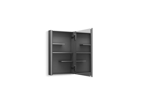 15" W x 36-1/8" H aluminum single-door medicine cabinet with 107 degree hinge