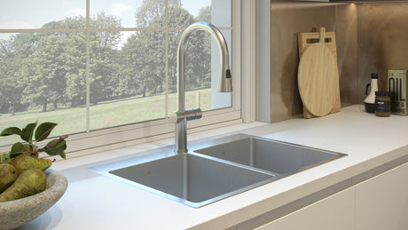 Brookmore 31-in LR x 20.9-in FB x 9-in DP Drop in Double Bowl Stainless Steel Sink