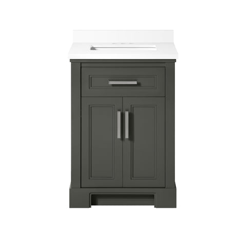 SCARLETT 24IN VANITY IN SAGE GREEN WITH WHITE QUARTZ TOP & CERAMIC BASIN