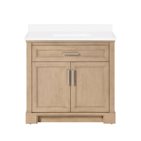 SCARLETT 36IN VANITY IN SAHARA BIRCH WITH WHITE QUARTZ TOP & CERAMIC BASIN