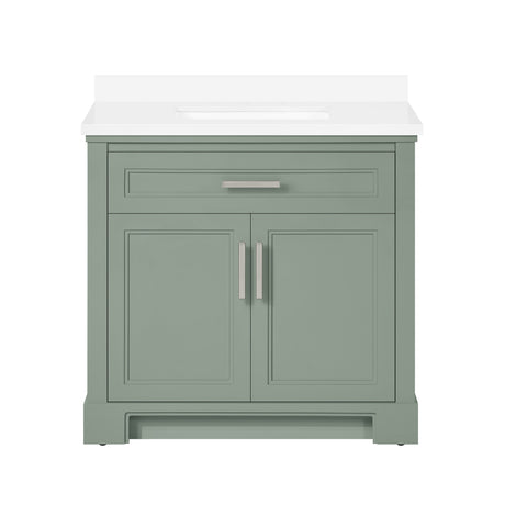 SCARLETT 36IN VANITY IN SAGE GREEN WITH WHITE QUARTZ TOP & CERAMIC BASIN