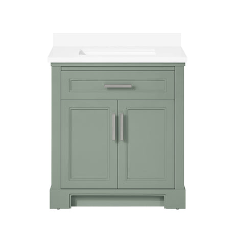 SCARLETT 30IN VANITY IN SAGE GREEN WITH WHITE QUARTZ TOP & CERAMIC BASIN