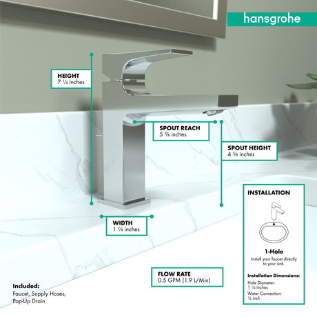 Metropol Single-Hole Faucet 110 with Lever Handle and Pop-Up Drain, 0.5 GPM in Chrome