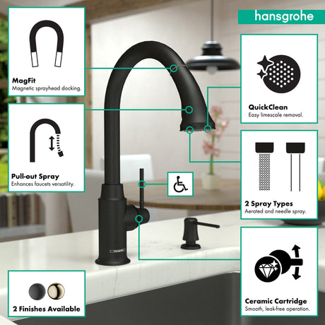 Talis C HighArc Kitchen Faucet, 2-Spray Pull-Down, 1.75 GPM in Matte Black