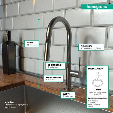 Talis N HighArc Kitchen Faucet, A-Style 2-Spray Pull-Down, 1.75 GPM in Steel Optic