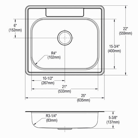 MFV1073 SS Sink, 25" x 22" x 5-3/8", Drop-in, S