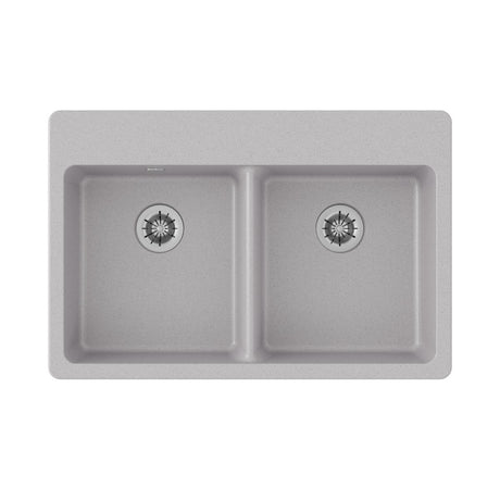 Quartz Classic 33" x 22" x 5-1/2" Double Bowl Drop-in ADA Sink with Perfect Drain® Greystone