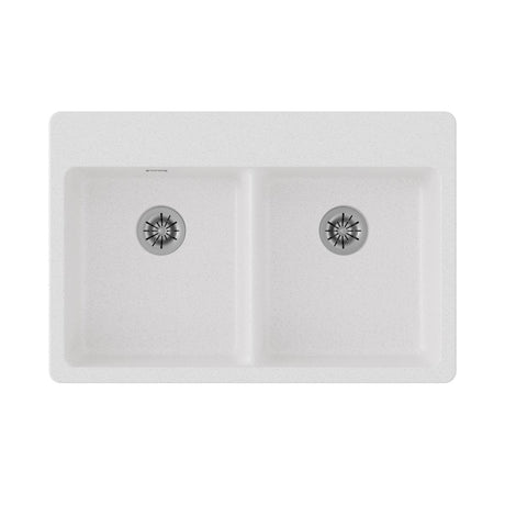 Quartz Classic 33" x 22" x 5-1/2" Double Bowl Drop-in ADA Sink with Perfect Drain® White