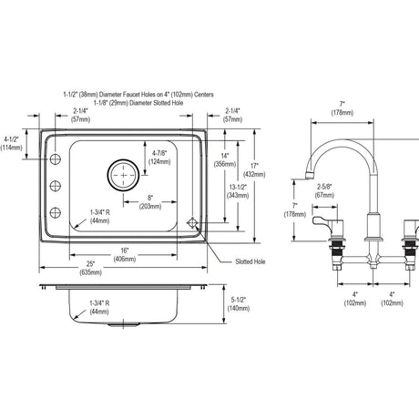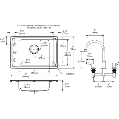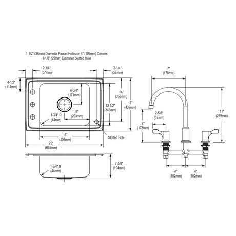 SS 25x17x7.6 Sgl Drop-in Sink Kit