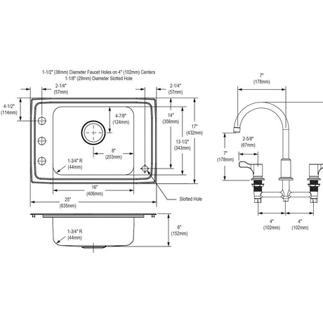 SS 25x17x6 Sgl Drop-in Sink Kit