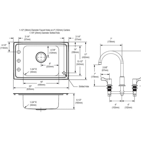 SS 25x17x6.5 Sgl Drop-in Sink Kit