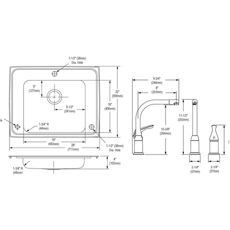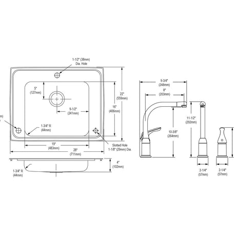 SS 28x22x4 Sgl Drop-in Sink Kit