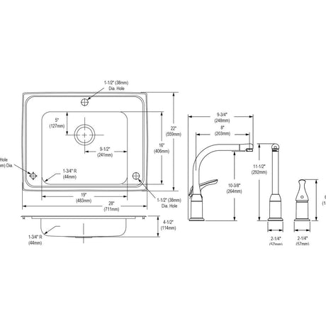 SS 28x22x4.5 Sgl Drop-in Sink Kit