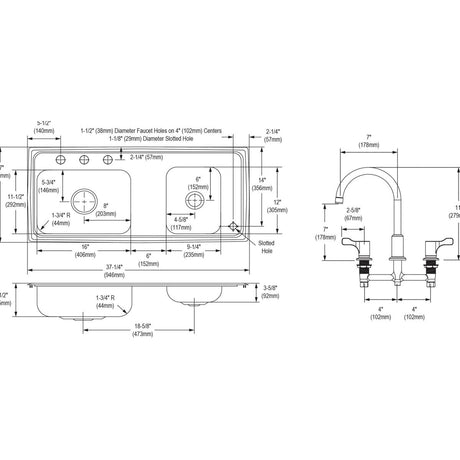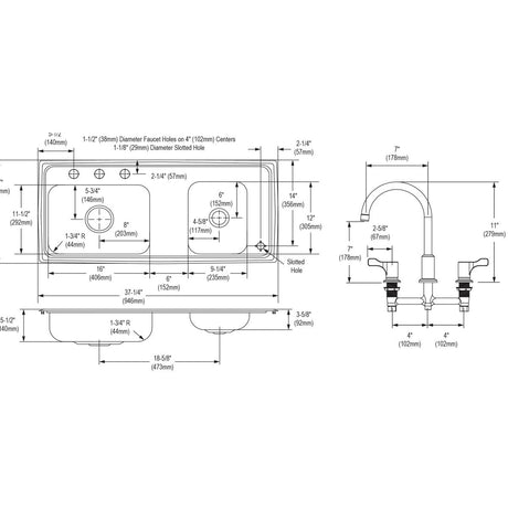SS 37.2x17x6 Dbl Drop-in Sink Kit